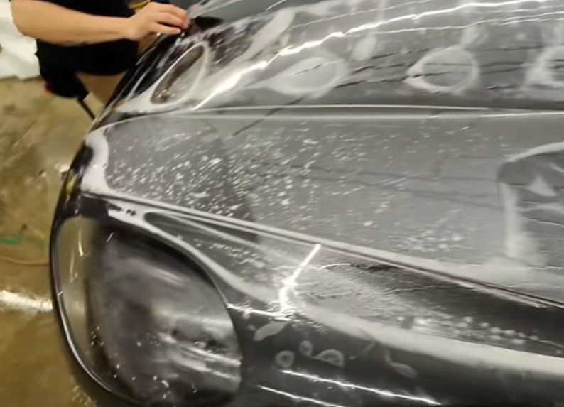 Before the installation of PPF, the vehicle must undergo a thorough wash and decontamination process to ensure that the paint surface is clean and free from dirt, oils, or other contaminants. This is a crucial step to ensure proper adhesion of the film and to avoid any imperfections post-installation.